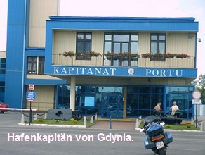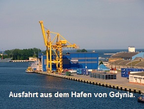 - und kamen dann am frühen Morgen des folgenden Tages im polnischen Hafen Gdynia ( deutsch: Gdingen ) in der Danziger Bucht an.
